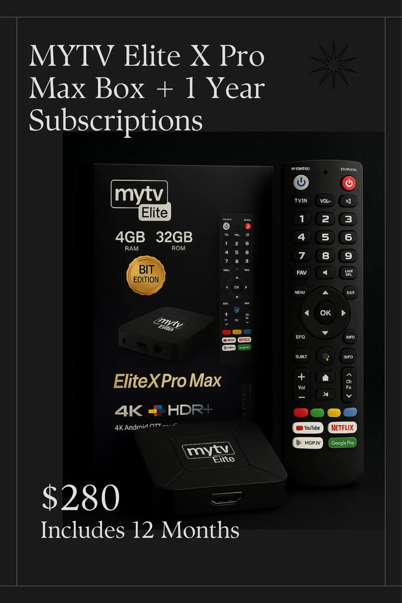 MYTV Elite X Pro Max Box + 1 Year Subscription – Ultimate 4K Streaming Bundle